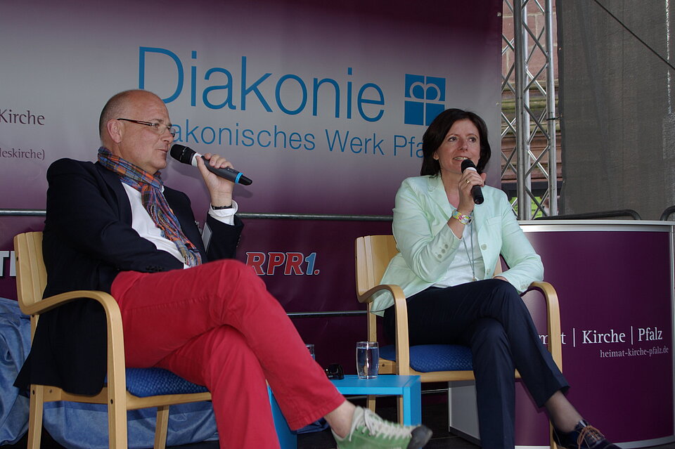 Am Samstag lädt auf dem Leichhof gegenüber dem Alten Dom die „Blaue Couch“ der Diakonie mit Landesdiakoniepfarrer Albrecht Bähr Prominente Gäste zum Talk ein. Führende Persönlichkeiten aus Politik, Gesellschaft und Kirche werden in dem kurzweiligen Interview-Format über aktuelle Themen sprechen. So wird am Samstag um 12 Uhr die pfälzische Kirchenpräsidentin Dorothee Wüst mit Bischof Peter Kohlgraf ins Gespräch kommen. Die Rheinland-Pfälzische Ministerpräsidentin Malu Dreyer wird am Samstag gegen 14.45 Uhr erwartet.